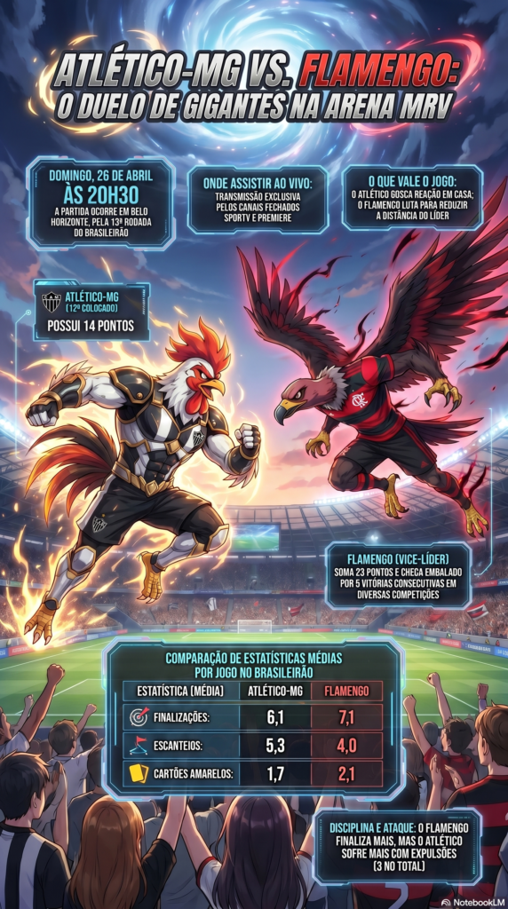 Neste domingo, a Arena MRV será o palco de um dos confrontos mais emblemáticos do futebol brasileiro. Atlético-MG e Flamengo se enfrentam pela 13ª rodada do Brasileirão 2026 em um cenário de nítido contraste técnico e estatístico.