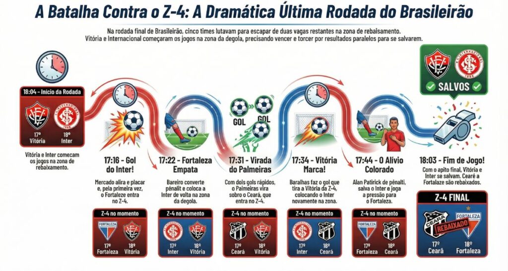 luta contra o rebaixamento, rodada final do Brasileirão, drama no Z-4, viradas históricas no futebol brasileiro.