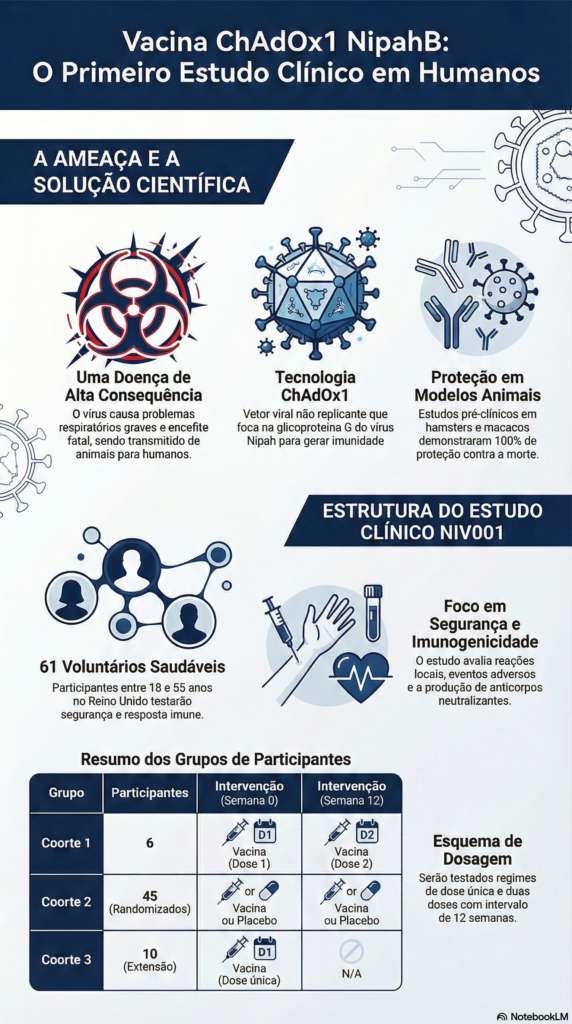 O primeiro ensaio em humanos da vacina ChAdOx1 NipahB da Universidade de Oxford não é apenas um teste; é a materialização de anos de preparação estratégica contra um dos vírus mais letais do planeta. Ao alavancar uma plataforma de vacina testada e comprovada, demonstrar uma eficácia impressionante de dosePrimeiro teste em humanos: Vacina de Oxford contra o vírus Nipah revela 4 segredos promissores
